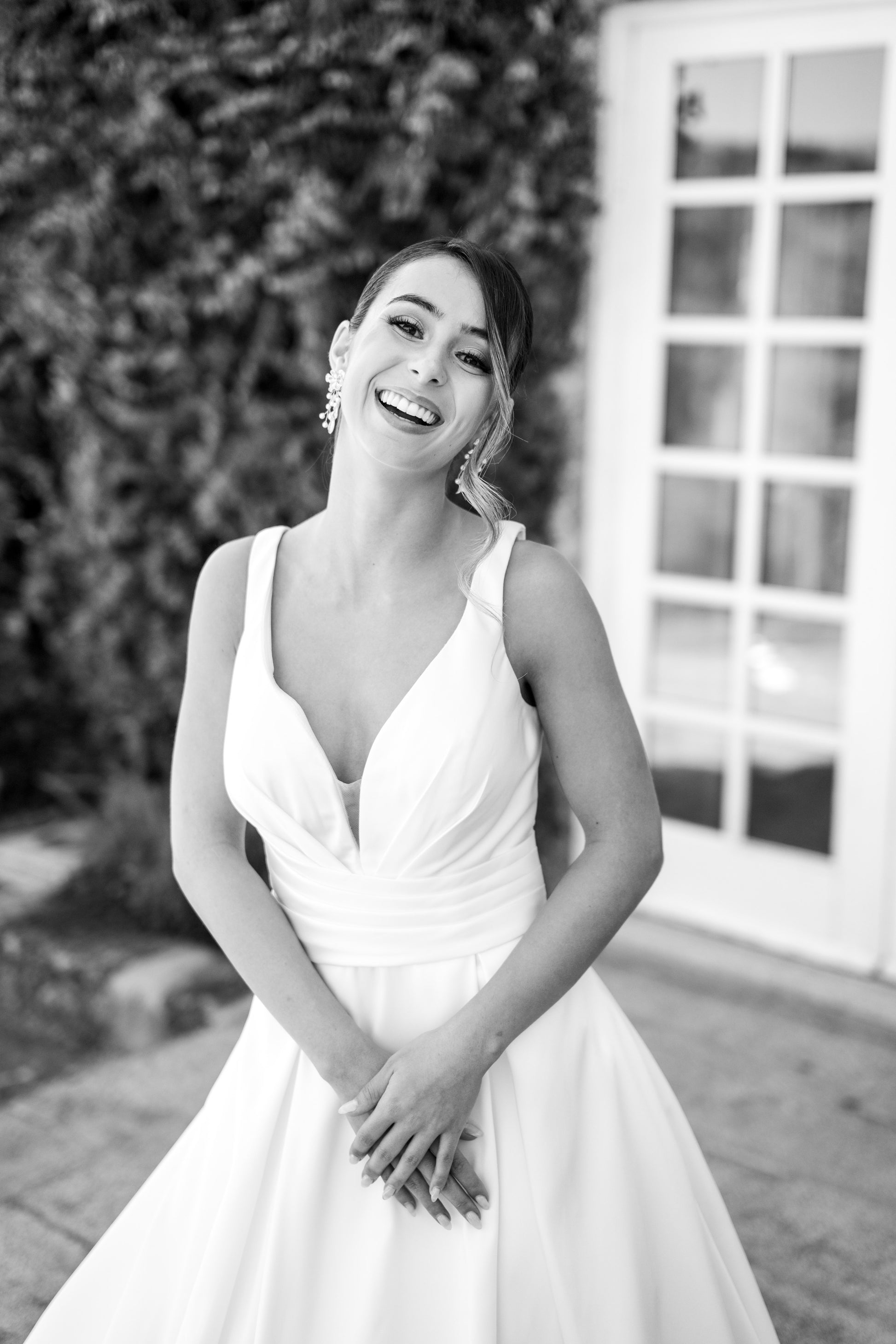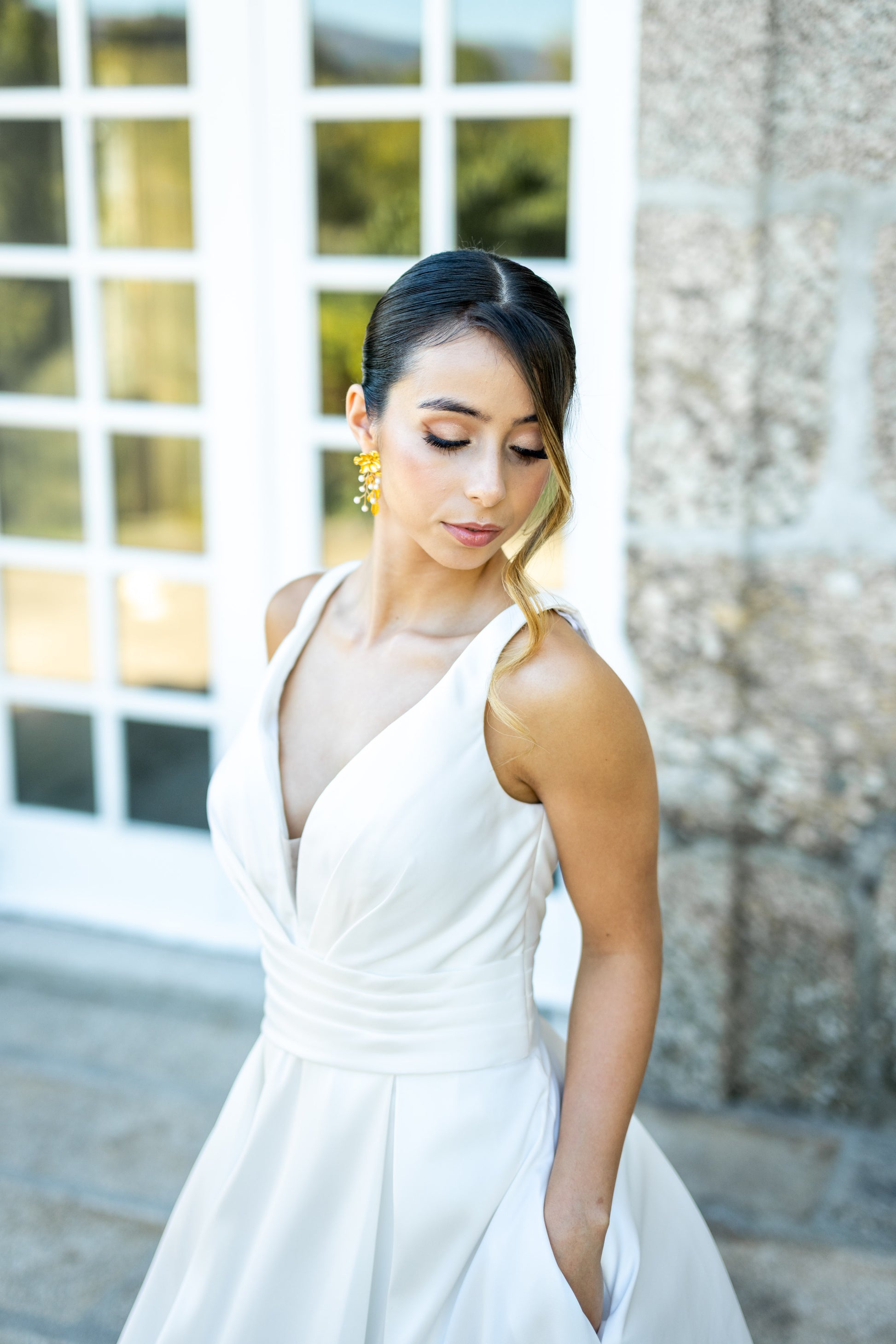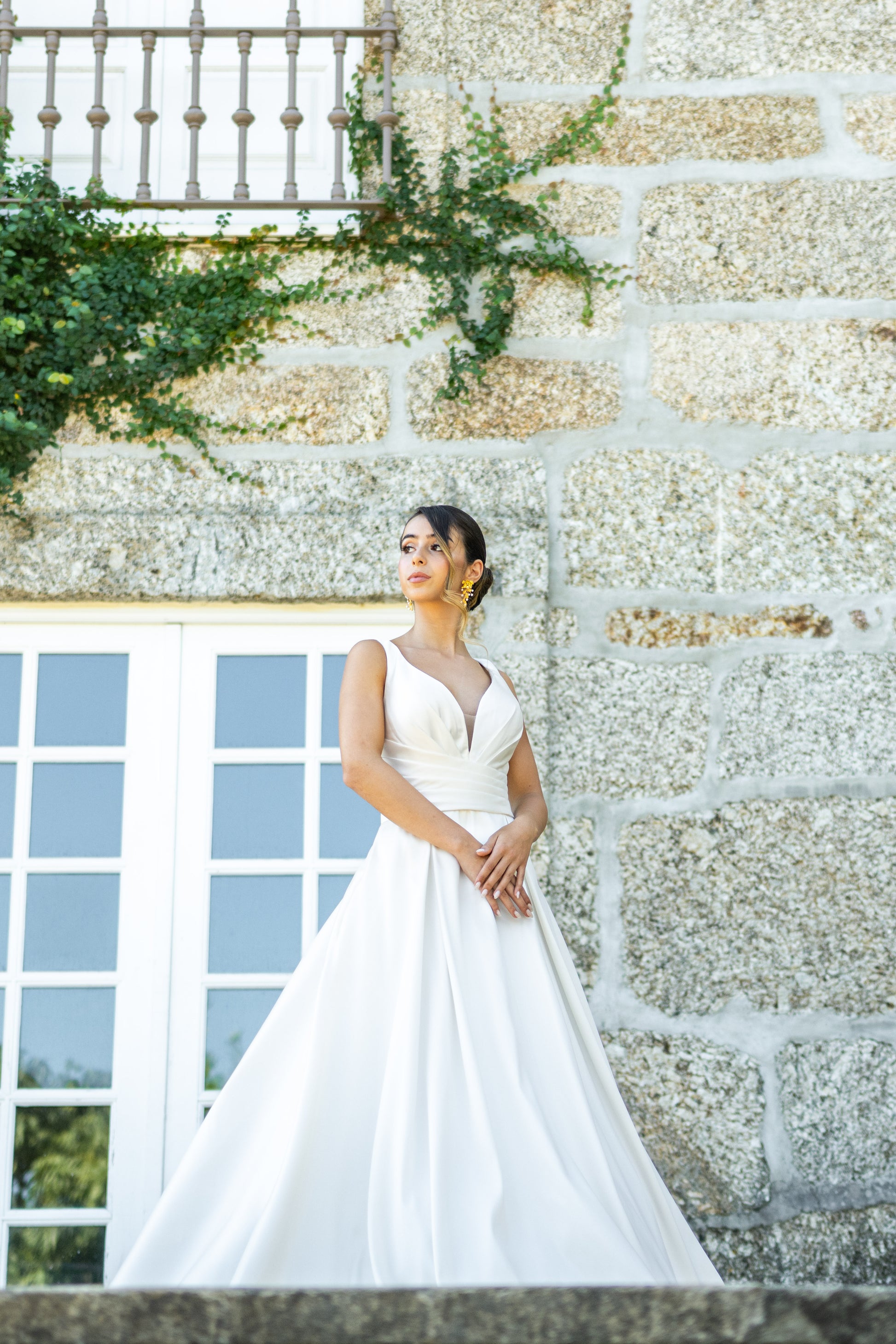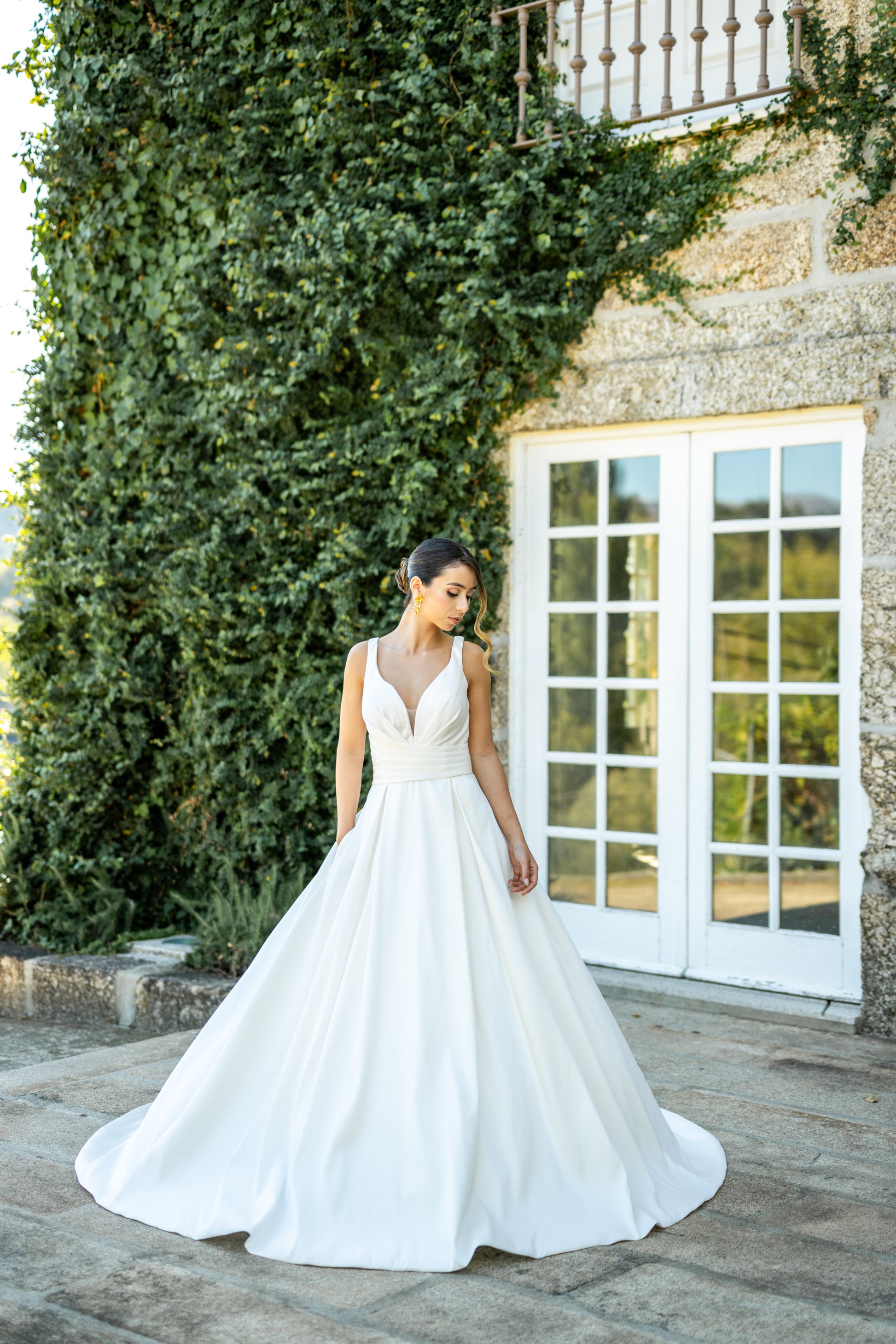 Perfeito para noivas que procuram um visual clássico e sofisticado, este vestido combina a beleza da simplicidade com a qualidade de um tecido nobre.